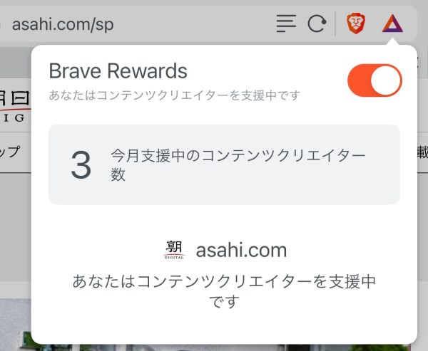 朝日新聞デジタルやウィキペディアもbraveに対応しているようです